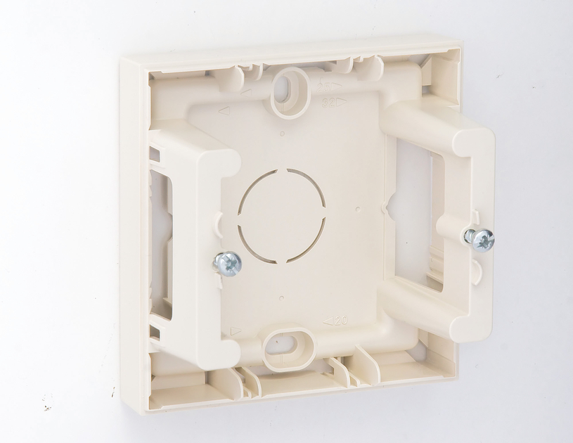 Standalone assembly machine with a 2-spindle screwdriving system for 16 different product varieties of over-plaster modules for electrical connections, as well as telephone and data-communication sockets, control boxes for intelligent household technology, light switches and dimmers.