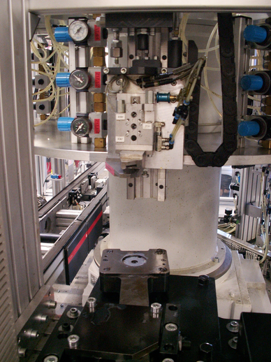 Using a 8-position Rotary Index Table with 6 Processing Stations, a total cycle time of less than 10 seconds per parts was achieved.