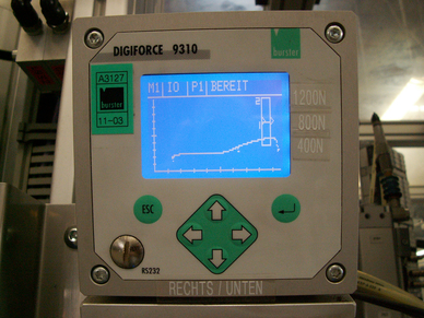The winding process of the catch onto the shaft is verified by a force-/distance measurement system (Digiforce 9310) and the curve is graphically displayed.