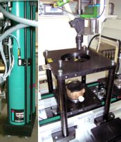 Fastening of cover. The pallet is lifted by a press-cylinder to a stop and the parts are compressed.