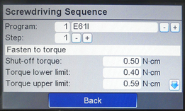 The sequence controller already includes standard screwdriving programs for tightening to torque and loosening to angle. Parameters can be directly altered to suit screwdriving tasks using the touch screen.