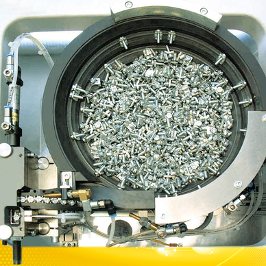Screws with a very short shaft, rivets with a wide shaft-diameter and parts with complex external geometries have one thing in common: feeding through a feedhose is often not possible.
