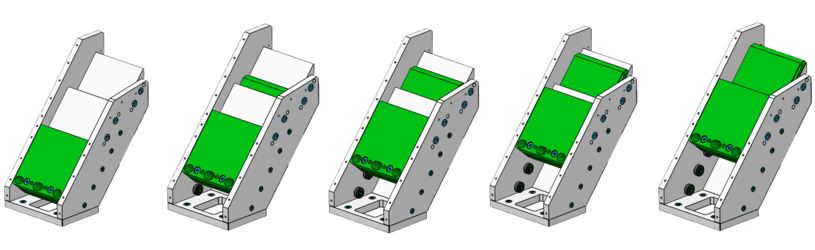 The feed material is quietly fed in stages over linear feed plates from the storage container towards the feed rails. A brushless electric motor, controlled by the smart energy-efficient PFC100 controller, is used to drive the feed plates. The controller also regulates conveyor speed, supporting the gentle feeding of parts.